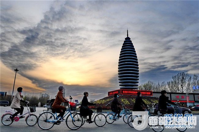 市民在河北雄安新區(qū)容城縣縣城道路上騎行(3月29日攝)。新華社記者 牟宇 攝
