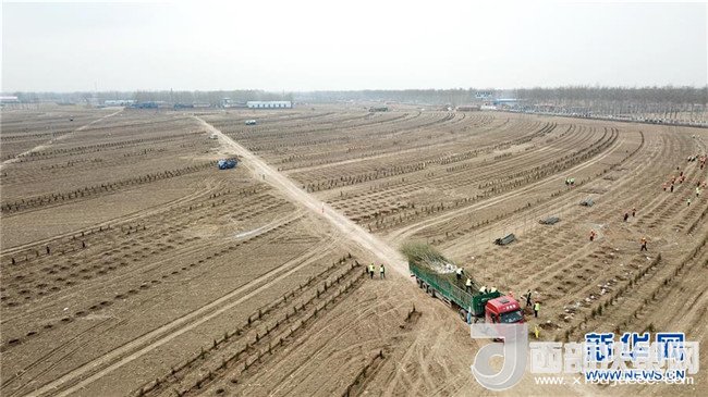 工人在河北雄安新區(qū)“千年秀林”工程施工現場施工(3月21日攝)。新華社記者 牟宇 攝