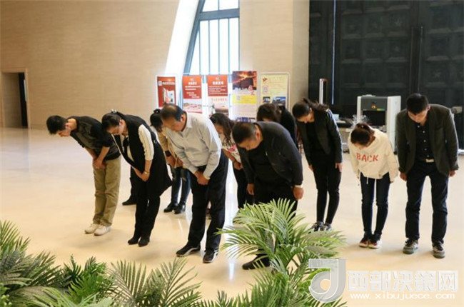 活動(dòng)中,館長聶明靜、副館長王雅麗以身作則,率先垂范,首先帶領(lǐng)廣大干部職工積極行動(dòng),擦拭墓碑,修整松林,清除雜草,規(guī)整垃圾,用這種簡單而樸實(shí)的行動(dòng)來緬懷祭奠革命英魂。接著在王雅麗的主持下,由聶明靜帶頭紛紛向?yàn)楹葱l(wèi)陜甘邊革命勝利果實(shí)而英勇獻(xiàn)身的南梁閆洼子四十二烈士敬獻(xiàn)鮮花、鞠躬默哀、聽述先輩事跡,并赴新館序廳向?yàn)榻⑿轮袊瞎M瘁矢志一生的“五大書記”(毛澤東、周恩來、朱德、劉少奇、任弼時(shí))銅像雕塑祭花默哀、撣拭塵灰,真切地表達(dá)了每一位紀(jì)念館人對(duì)無數(shù)英烈先賢革命壯舉的深切緬懷和偉大革命領(lǐng)袖的哀思敬慕之情。