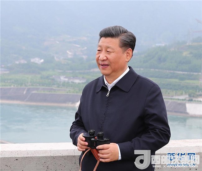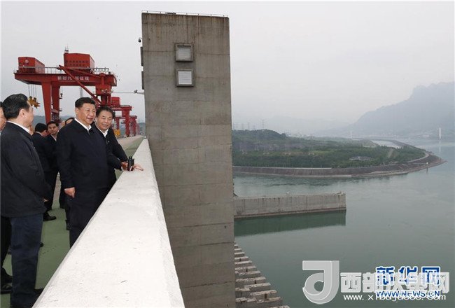 4月26日下午,中共中央總書記、國家主席、中央軍委主席習(xí)近平在武漢主持召開深入推動長江經(jīng)濟(jì)帶發(fā)展座談會并發(fā)表重要講話。這是座談會前,習(xí)近平于24日下午在三峽大壩壩頂察看三峽工程和壩區(qū)周邊生態(tài)環(huán)境。新華社記者 謝環(huán)馳 攝