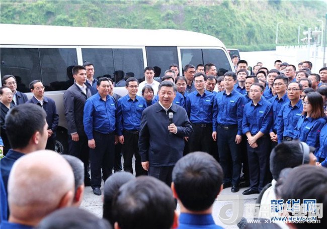 4月26日下午,中共中央總書記、國家主席、中央軍委主席習(xí)近平在武漢主持召開深入推動長江經(jīng)濟(jì)帶發(fā)展座談會并發(fā)表重要講話。這是座談會前,習(xí)近平于24日下午在三峽大壩左岸電站同技術(shù)人員、勞動模范、工作人員代表親切交流。新華社記者 謝環(huán)馳 攝