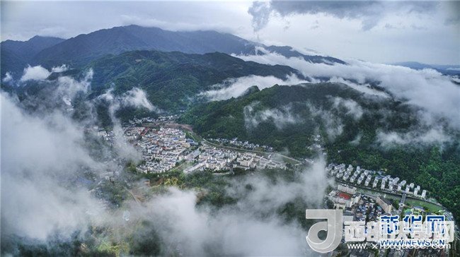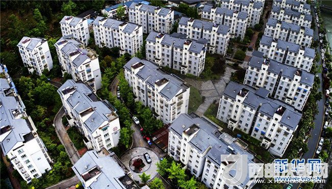 由浙江省寧波市援建的青川縣城東山小區(qū)(4月25日無人機拍攝)。汶川地震后的2009年12月,東山小區(qū)成為當(dāng)?shù)氐谝粋€建成的安置小區(qū),首批408戶災(zāi)民搬進了新居。新華社記者陶明攝