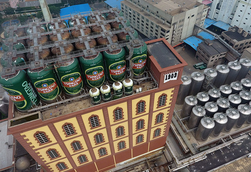 這是無(wú)人機(jī)拍攝的青島啤酒廠(2017年8月10日攝)。新華社記者 朱崢 攝