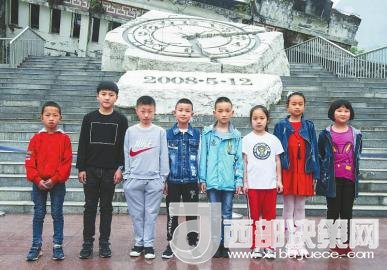 2018年5月1日,8個(gè)孩子站在汶川縣映秀鎮(zhèn)漩口中學(xué)遺址前,拍下了一張合影。