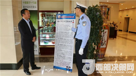 西部決策網(wǎng)——西部大開發(fā)訊(帥華鋒 通訊員 馬存福 漆小燕)酒后駕車害人深,酒前宣傳可預(yù)防。為進一步倡導文明、安全行車,培養(yǎng)駕駛?cè)肆己玫鸟{駛習慣,最大限度的預(yù)防和減少酒后駕駛交通違法行為,營造“拒絕酒后駕駛”濃厚的宣傳氛圍。近日,甘肅天水公安交警部門結(jié)合全省正在開展的“三反一查”綜合治理以及“七個一律”工作安排,在轄區(qū)酒店、賓館投放“拒絕酒駕”宣傳立式海報、溫馨提示卡,將酒駕的危害、法律法規(guī)宣傳前移到了就餐前,讓市民在餐桌上筑起一道法律安全防線。