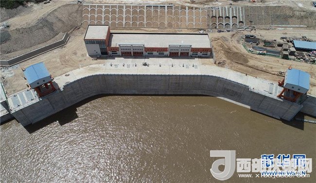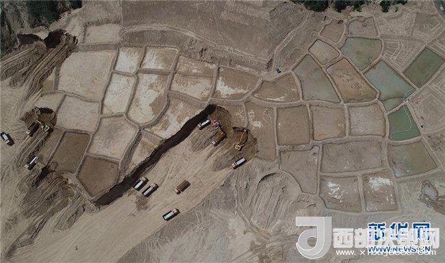 延安黃河引水工程南河水庫施工現(xiàn)場(5月30日無人機(jī)拍攝)。
