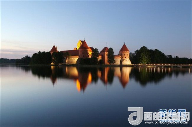 這是5月30日拍攝的落日余輝中的特拉凱城堡。特拉凱城堡位于立陶宛首都維爾紐斯以西約25公里的加爾韋湖的一個湖心島上,始建于14世紀。新華社記者李驥志攝