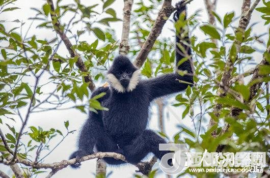 圖為普洱太陽河生態(tài)環(huán)境建設(shè)示范點(diǎn)內(nèi)的白頰長臂猿。(供圖)