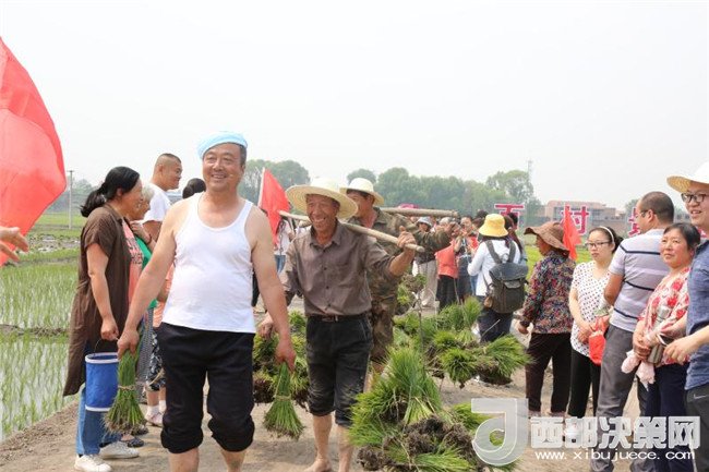 太原6月2日電2日,芒種時節(jié),以“千年厚禮晉祠大米”為主題的晉源區(qū)首屆晉之韻插秧文化節(jié)在晉源區(qū)北大寺村大寺荷風(fēng)苑舉行。水稻田里,打秧、運(yùn)秧、拋秧、插秧……再現(xiàn)一幅詩情畫意的北國江南農(nóng)耕圖。