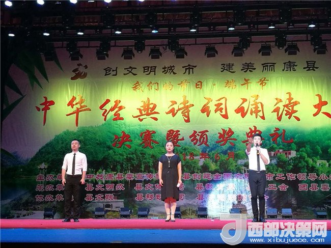 西部決策網(wǎng)——西部大開(kāi)發(fā)訊(帥華鋒 通訊員 張存益 杜寧生)為紀(jì)念愛(ài)國(guó)詩(shī)人屈原,進(jìn)一步弘揚(yáng)傳承中華民族優(yōu)秀傳統(tǒng)文化,豐富全縣人民群眾的文化生活,助推全國(guó)文明城市創(chuàng)建,6月12日,甘肅康縣舉行以“創(chuàng)建文明城市,共建美麗康縣”為主題的“我們的節(jié)日·端午節(jié)”中華經(jīng)典詩(shī)詞誦讀大賽決賽暨頒獎(jiǎng)典禮??悼h四大班子領(lǐng)導(dǎo)和1000余名觀眾一同觀看了決賽盛況和精彩對(duì)決。