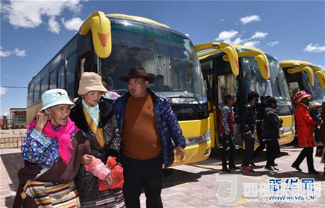 6月17日,尼瑪縣榮瑪鄉(xiāng)群眾乘車遷往位于拉薩的新家。