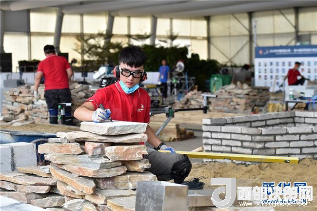 在第45屆世界技能大賽全國選拔賽廣東賽區(qū)比賽現(xiàn)場,選手在園藝項(xiàng)目中建造“小公園”(6月25日攝)。新華社記者 梁旭 攝