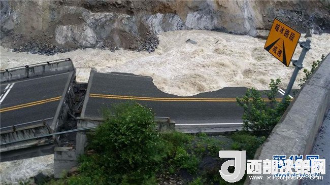 暴雨致四川茂縣國道213線一處橋梁垮塌