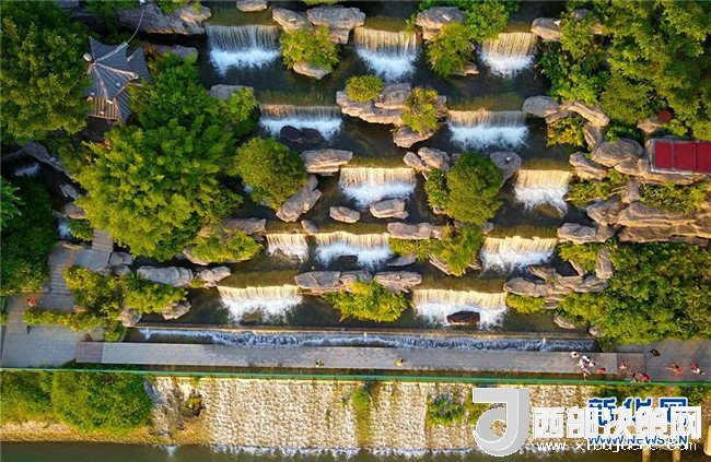 炎炎夏日,柳州市區(qū)柳江沿岸的人工瀑布群每天定時(shí)開(kāi)放,為市民送去清涼。新華社發(fā)(黎寒池 攝)