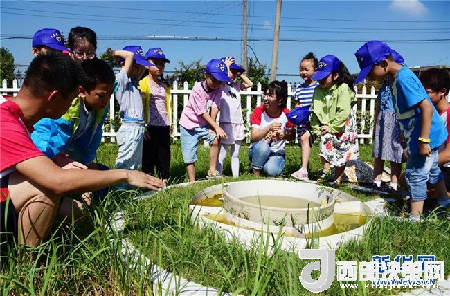 8月2日,江蘇鎮(zhèn)江市寶塔路街道潤州花園社區(qū)的小朋友在丹徒國家基本氣象站的室外氣象監(jiān)測場學(xué)習(xí)氣象知識。 新華社發(fā)(石玉成 攝)