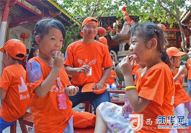 為進一步豐富廣大外來務(wù)工人員子女的暑期生活,福建省泉州市泉港區(qū)先后邀請轄區(qū)130多戶外來務(wù)工人員家庭,一起參觀當(dāng)?shù)胤逦补懦牵w驗海絲文化。新華社發(fā)(林弘梫 攝)