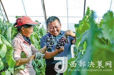 村民劉喜梅、郭翠蓮和姐妹們有說(shuō)有笑地摘著大串葡萄,發(fā)自?xún)?nèi)心的喜悅洋溢在臉上。“過(guò)去,就種點(diǎn)地靠天吃飯,趕上好年景,辛辛苦苦在地里一年忙到頭,人均收入不到1000元?,F(xiàn)在我們不用頂著烈日看天吃飯了,在棚里摘葡萄、修枝剪葉,每月就掙3000到4500多元,這是做夢(mèng)都想不來(lái)的好事。這得感謝黨的好政策!感謝王萬(wàn)斌!”劉喜梅高興地說(shuō)。
