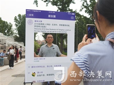 清華園內(nèi),隨處可見與錄取通知書合影留念的景象。今年的錄取通知書一亮相就成了“網(wǎng)紅”,通知書中夾帶了一張3D“二校門”,打開通知書“二校門”就會(huì)“躍然紙上”,初來乍到自然少不了和“網(wǎng)紅”合影。