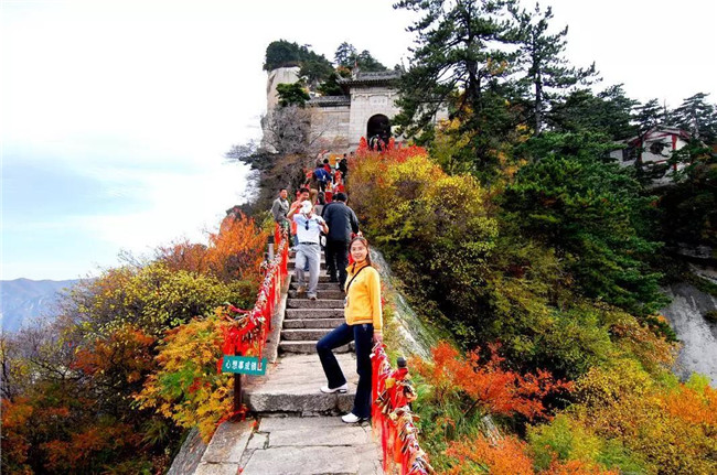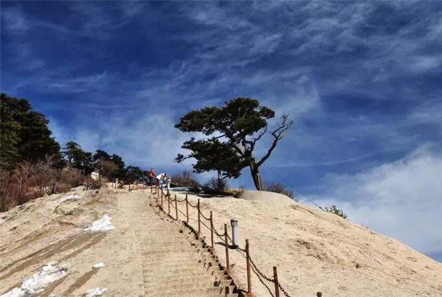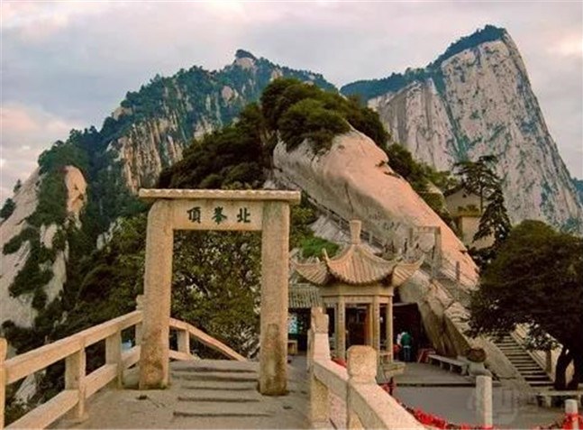 北峰海拔1614米,為華山主峰之一,因位置居北得名。北峰四面懸絕,上冠景云,下通地脈,巍然獨(dú)秀,有若云臺,因此又名云臺峰。唐李白《西岳云臺歌送丹丘子》詩曾寫到:“三峰卻立如欲摧,翠崖丹谷高掌。白帝金精運(yùn)元?dú)?,石作蓮花云作臺。”
