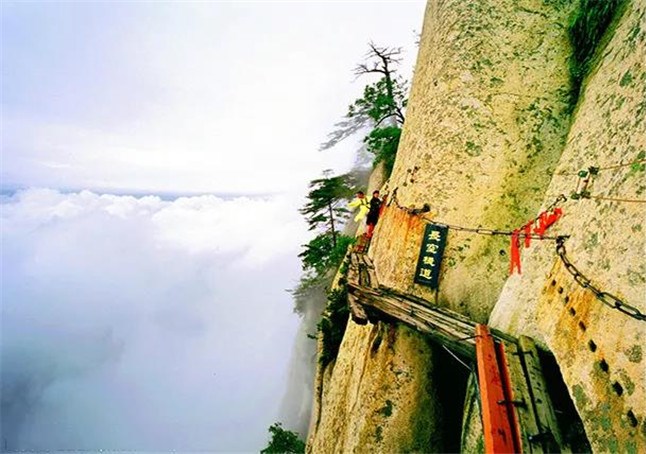 由于華山太險,所以唐代以前很少有人登臨。歷代君王祭西岳,都是在山下西岳廟中舉行大典。《史記》載,黃帝、虞舜都曾到華山巡狩。據(jù)記載,秦昭王時命工匠施鉤搭梯攀上華山。
