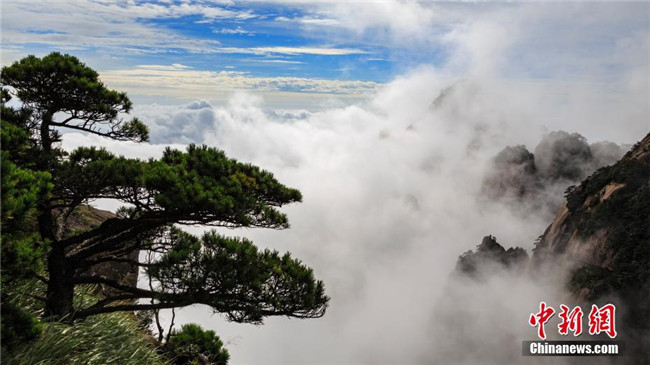 9月17日,秋雨洗禮后的安徽黃山風(fēng)景區(qū)霧氣繚繞,秋風(fēng)清爽。遠(yuǎn)處千峰疊嶂,互相競秀,千谷萬壑,云煙升騰。陣陣秋風(fēng),吹拂著云霧淡淡濃濃,天都峰、蓮花峰及西海群峰藏在其間,若隱若現(xiàn),幻若仙境。 葉永清 攝