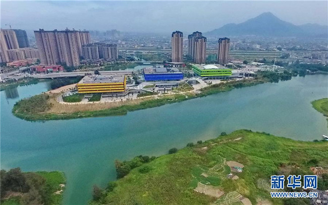這是利用木蘭溪流域舊河道開挖成的人工湖——玉湖。當?shù)卦诖私Y(jié)合周邊公共綠地,建設(shè)公共建筑,實現(xiàn)了現(xiàn)代建筑與自然景觀渾然一體(8月6日無人機拍攝)。新華社記者 林善傳 攝