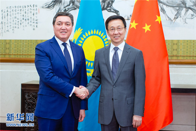 韓正表示,在兩國(guó)元首戰(zhàn)略引領(lǐng)下,中哈關(guān)系保持高水平運(yùn)行,共建“一帶一路”合作成果豐碩。今年6月,兩國(guó)元首再次會(huì)晤,對(duì)兩國(guó)關(guān)系發(fā)展作出新的規(guī)劃和部署。雙方要全面落實(shí)兩國(guó)領(lǐng)導(dǎo)人重要共識(shí),進(jìn)一步加強(qiáng)發(fā)展戰(zhàn)略對(duì)接,深化產(chǎn)能、投資、經(jīng)貿(mào)、財(cái)金、能源、互聯(lián)互通等各領(lǐng)域合作,推動(dòng)中哈全面戰(zhàn)略伙伴關(guān)系不斷邁上新臺(tái)階。