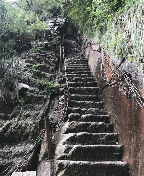 千尺幢:一條峭壁上的大裂縫,陷在兩旁的巨石之間,共370余級(jí)臺(tái)階,坡度極陡,每級(jí)臺(tái)階的寬度不過三分之一的腳掌。 俯視腳下,如臨深淵。