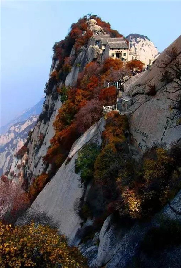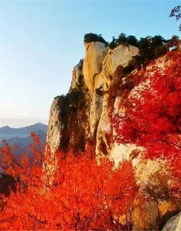 這里的秋天更容易令人迷醉,一步一景步步生情,這里溫度適中,紅葉滿山,山崖為底,松檜為墨,是登山拍攝的最佳季節(jié)。秋風(fēng)好比一支神奇的彩筆,肆意揮灑,將華山繪成了一幅燦爛的畫卷。從山腳下的郁郁蔥蔥到山頂上的紅黃相間,華山上的每一個(gè)臺(tái)階都浸染在了紅葉的絢爛中。
