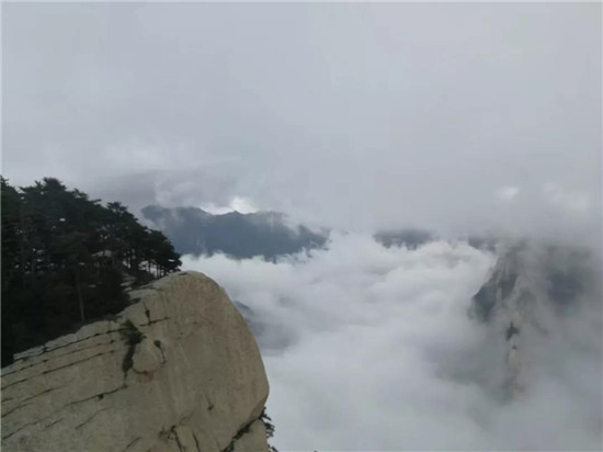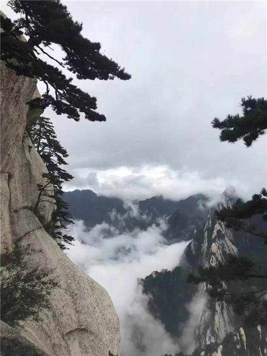 秋季,云海經(jīng)常出現(xiàn)在雨后,融入華山云海,騰云駕霧,風(fēng)拂衣抖,有種飛一樣的感覺。眼前陡壁峭崖蹤影全無(wú),高聳的山峰如飄渺的仙島。華山已無(wú)險(xiǎn)可防可守,任憑滾滾云海,洶涌澎湃的肆虐。云依著霧,霧掛著云,依偎纏綿,飛升莫測(cè),風(fēng)生變幻。一會(huì)兒如獅虎,如鷹鷂,一會(huì)兒似神兵,似仙女,蒸騰極富想象力。華山峰巒似懸島明滅,若隱若現(xiàn)。如果夠幸運(yùn)還會(huì)看到彩虹哦!