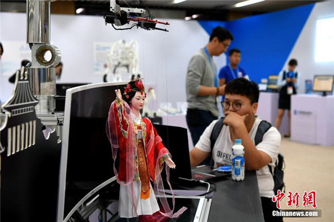 10月13日,第四屆中國(guó)“互聯(lián)網(wǎng)+”大學(xué)生創(chuàng)新創(chuàng)業(yè)大賽總決賽在廈門(mén)大學(xué)舉行。無(wú)人機(jī)、自助售飯機(jī)、人偶互動(dòng)、全息3D智能視頻、機(jī)器人輪椅、3D打印假肢手臂等大學(xué)生研發(fā)設(shè)計(jì)的產(chǎn)品亮相會(huì)場(chǎng),以“90后”為主的創(chuàng)新創(chuàng)業(yè)生力軍已全面發(fā)力,釋放出“青年+創(chuàng)新創(chuàng)業(yè)”的無(wú)窮力量。圖為人偶交互機(jī)器人展示。中新社記者 王東明 攝