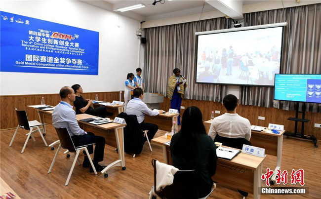 10月13日,第四屆中國(guó)“互聯(lián)網(wǎng)+”大學(xué)生創(chuàng)新創(chuàng)業(yè)大賽總決賽在廈門(mén)大學(xué)舉行。本屆大賽于今年3月份啟動(dòng),迄今累計(jì)已有近265萬(wàn)大學(xué)生、63萬(wàn)個(gè)團(tuán)隊(duì)參賽,涌現(xiàn)出一大批科技含量高、市場(chǎng)潛力大、社會(huì)效益好的高質(zhì)量項(xiàng)目,以“90后”為主的創(chuàng)新創(chuàng)業(yè)生力軍已全面發(fā)力,釋放出“青年+創(chuàng)新創(chuàng)業(yè)”的無(wú)窮力量。圖為比賽現(xiàn)場(chǎng)。中新社記者 王東明 攝