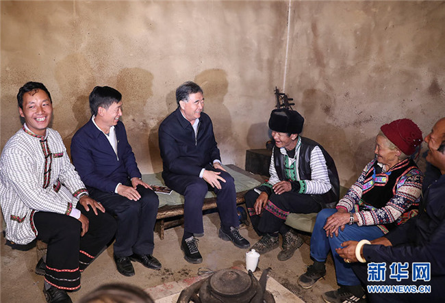 近日,中共中央政治局常委、全國政協主席汪洋在云南調研藏區(qū)民族宗教和脫貧攻堅工作。這是10月15日,汪洋在香格里拉市虎跳峽鎮(zhèn)金星村調研。 新華社記者 丁林 攝