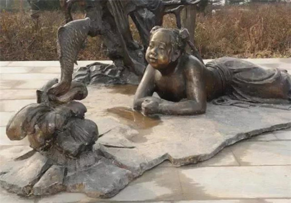 姜詩(shī),東漢四川廣漢人,娶龐氏為妻。夫妻孝順,其家距長(zhǎng)江六七里之遙,龐氏常到江邊取婆婆喜喝的長(zhǎng)江水。婆婆愛(ài)吃魚(yú),夫妻就常做魚(yú)給她吃,婆婆不愿意獨(dú)自吃,他們又請(qǐng)來(lái)鄰居老婆婆一起吃。一次因風(fēng)大,龐氏取水晚歸,姜詩(shī)懷疑她怠慢母親,將她逐出家門。龐氏寄居在鄰居家中,晝夜辛勤紡紗織布,將積蓄所得托鄰居送回家中孝敬婆婆。其后,婆婆知道了龐氏被逐之事,令姜詩(shī)將其請(qǐng)回。龐氏回家這天,院中忽然噴涌出泉水,口味與長(zhǎng)江水相同,每天還有兩條鯉魚(yú)躍出。從此,龐氏便用這些供奉婆婆,不必遠(yuǎn)走江邊了。