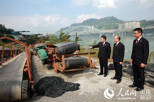 10月17日,重慶市人民檢察院第二分院檢察官復(fù)勘非法碼頭整治現(xiàn)場。劉政寧 攝