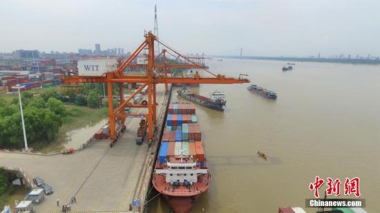 陽邏武漢新港位于武漢天興洲以東70公里的長江岸線上,是中國最大內(nèi)河航運(yùn)港口。中新社記者 鄭子顏 攝