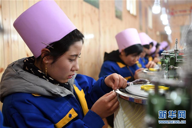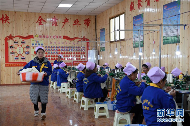 近日,甘肅省臨夏回族自治州東鄉(xiāng)族自治縣大樹鄉(xiāng)“扶貧車間”投入使用,40多名留守婦女在家門口實(shí)現(xiàn)就業(yè)。今年以來,共青團(tuán)臨夏州委積極爭取東西協(xié)作城市廈門市的支持,建立“扶貧車間”,同時組織培訓(xùn)農(nóng)村留守婦女,實(shí)現(xiàn)就地就業(yè)增收。新華社記者 范培珅 攝
