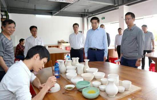 11月15日,市委書記、市人大常委會(huì)主任黃海昆深入北流市陶瓷小鎮(zhèn)調(diào)研。(記者 陳東 攝)