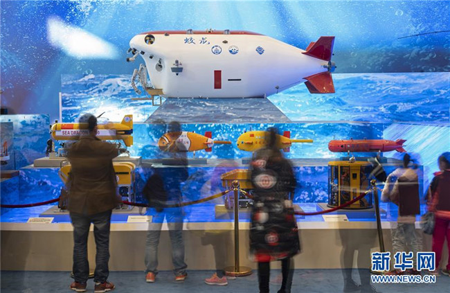 11月18日,觀眾在觀看“蛟龍”號(hào)載人潛水器等模型(慢門拍攝)。“偉大的變革——慶祝改革開放40周年大型展覽”11月13日在國(guó)家博物館隆重開幕。自開幕以來,展覽吸引了眾多參觀者。新華社記者 才揚(yáng) 攝