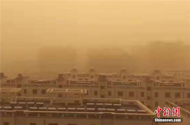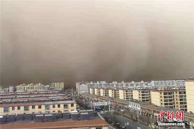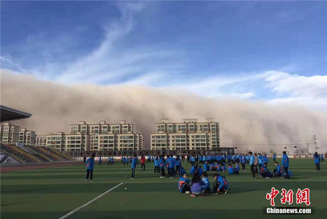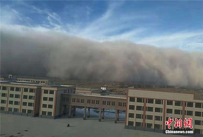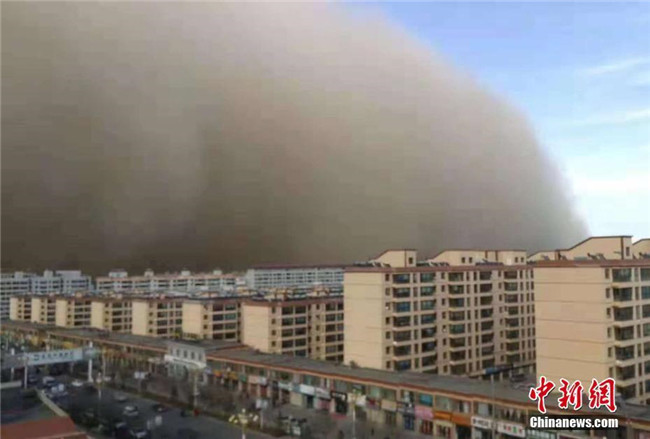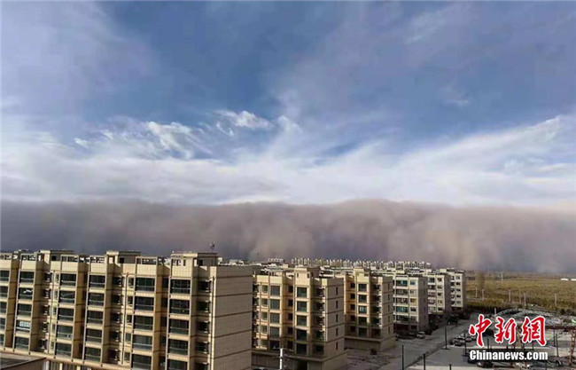 甘肅張掖沙塵暴來襲 “沙墻”高達(dá)上百米