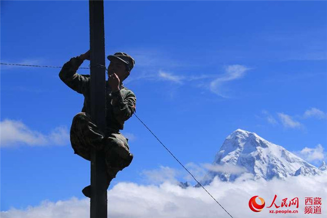 西藏軍區(qū)某部通信分隊縱兵生疏地域,消除“保仗”盲區(qū),通信骨干敢于架設(shè)“天線”,美到天際。古修宇 攝西藏軍區(qū)某部通信分隊縱兵生疏地域,消除“保仗”盲區(qū),通信骨干敢于架設(shè)“天線”,美到天際。古修宇 攝
