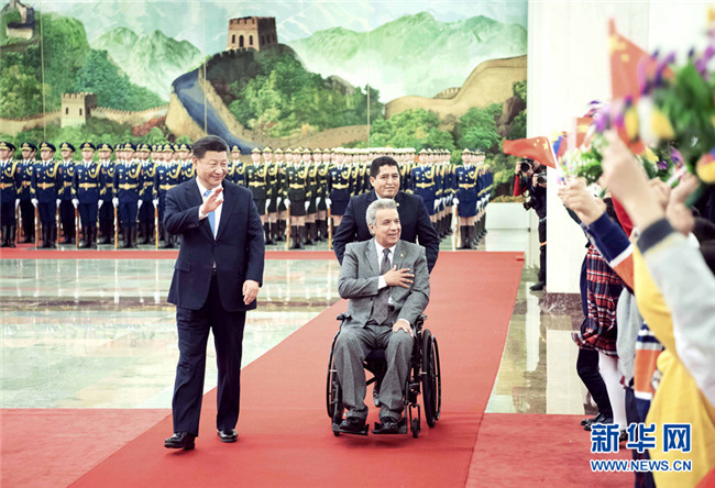 12月12日,國家主席習(xí)近平在北京人民大會(huì)堂同厄瓜多爾總統(tǒng)莫雷諾舉行會(huì)談。這是會(huì)談前,習(xí)近平在人民大會(huì)堂北大廳為莫雷諾舉行歡迎儀式。 新華社記者 李濤 攝