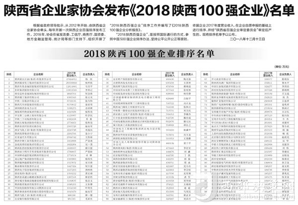 本次大會發(fā)布的2018陜西百強(qiáng)企業(yè),涉及陜西省能源化工、裝備制造、服務(wù)業(yè)和消費(fèi)品等多個行業(yè)。陜西延長石油(集團(tuán))有限責(zé)任公司、陜西煤業(yè)化工集團(tuán)有限責(zé)任公司、陜西有色金屬控股集團(tuán)有限責(zé)任公司、東嶺集團(tuán)位列2018陜西百強(qiáng)企業(yè)前四位,并位列陜西省民營企業(yè)第一名。