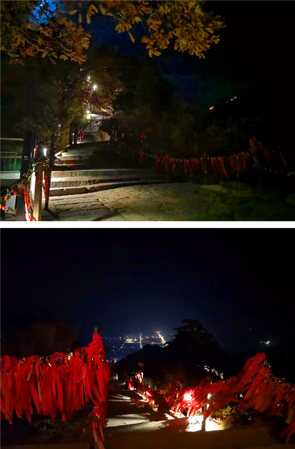 繁眼的星光,滿山的燈光,將華山映襯得一派柔和,這里的夜屏蔽了城市的喧囂與繁華,有著不屬于城市的寧?kù)o與美麗。