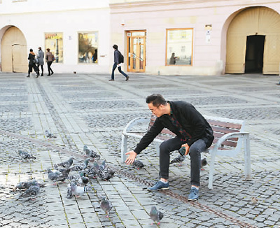 中國(guó)游客在羅馬尼亞錫比烏廣場(chǎng)休閑。新華社記者陳 進(jìn)攝 |