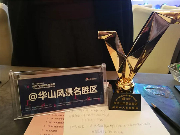 華山風(fēng)景名勝區(qū)官博在2018陜西政務(wù)V影響力峰會(huì)斬獲大獎(jiǎng)