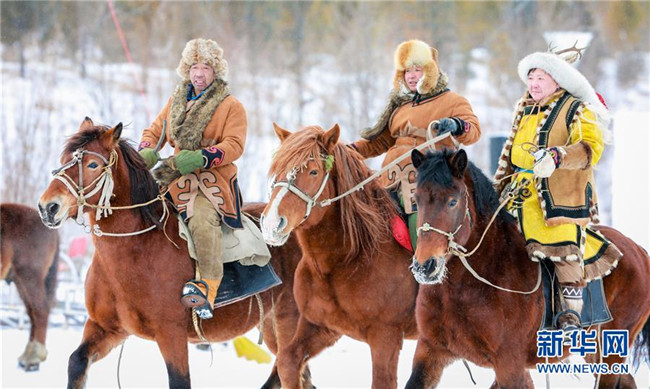 12月26日,馬隊在“伊薩仁”開幕式上表演。 當日,內(nèi)蒙古呼倫貝爾市第五屆鄂倫春冰雪“伊薩仁”在鄂倫春自治旗開幕。“伊薩仁”是鄂倫春語“集會”“聚會”的意思。此次“伊薩仁”期間,將舉行鄂倫春徒步林海穿越、汽車越野拉力賽、冰雪觀賞、雪上沖浪等活動,為游客帶來不一樣的冰雪體驗。 新華社發(fā)(丁根厚 攝)