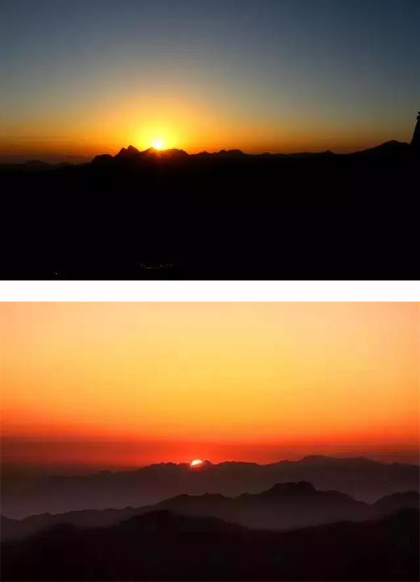 ??!青春的烈焰在升騰;新的生靈在震撼;歲月的車輪滾滾向前……該存在的難消失,該消失的存在難!天和地分了家,光明戰(zhàn)勝了黑暗。黑白交替,陰陽輪換!宇宙徹悟,氣象萬千。野草滾露,空氣新鮮;松濤簸香,山花爛漫;潮涌般的游客個個舒坦,猶如飽乳的嬰兒笑得甜甜。零晨三點,漆黑一團。熙熙攘攘的游客擁向山路彎彎,歡聲笑語、呼喚吶喊、手電筒的光柱密密麻麻。萬萬千千織成縷縷金練,宛如“金龍盤山”!朝陽峰上熱鬧非凡。不是拜佛求仙,卻耐心等待!企盼一個輝煌時刻,猶如新生命噴紅分娩。一飽華山日出的壯觀!