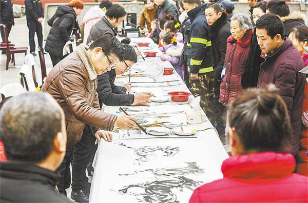 1月6日,“我們的中國夢”2019年重慶市文化進萬家活動啟動儀式暨紅色文藝輕騎兵文藝志愿服務活動在合川區(qū)太和鎮(zhèn)舉行,圖為送書畫現場。張華 攝