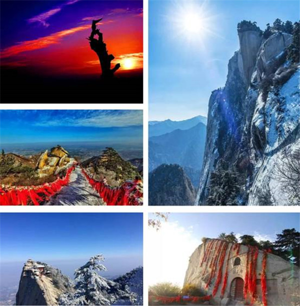 石蓮鋪地,華岳擎天。勢(shì)行斧刃,剛插云環(huán)。北臨黃渭,東鎖潼關(guān)。南依秦嶺,西望長安。華山等你來,一道呼吸新鮮空氣,遠(yuǎn)離霧霾。